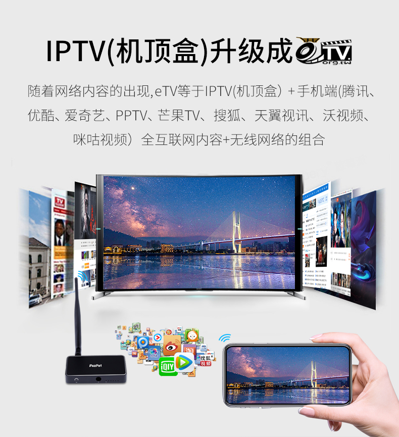2019年最新出品的多功能高配同屏器。除了拥有普通Miracast加密狗的传统功能外,这款高配镜盒金属材料的投屏盒子还拥有3个独特的功能:即快速扫码无线连接功能,无线AP和IPTV模式之间的自由切换功能,及热点功能。