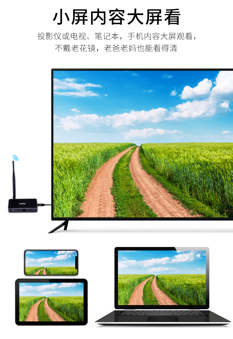 3)手机,平板电脑,笔记本电脑,PC等无线投屏镜像;